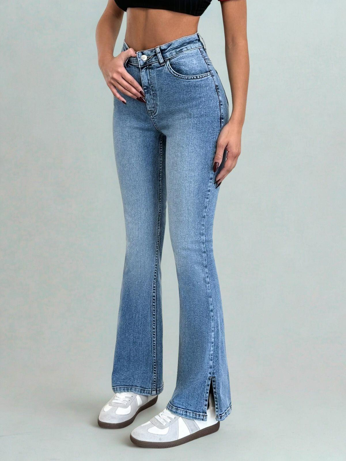 Kadın İspanyol Paça Yırtmaçlı Jeans Mavi (1175PLST)