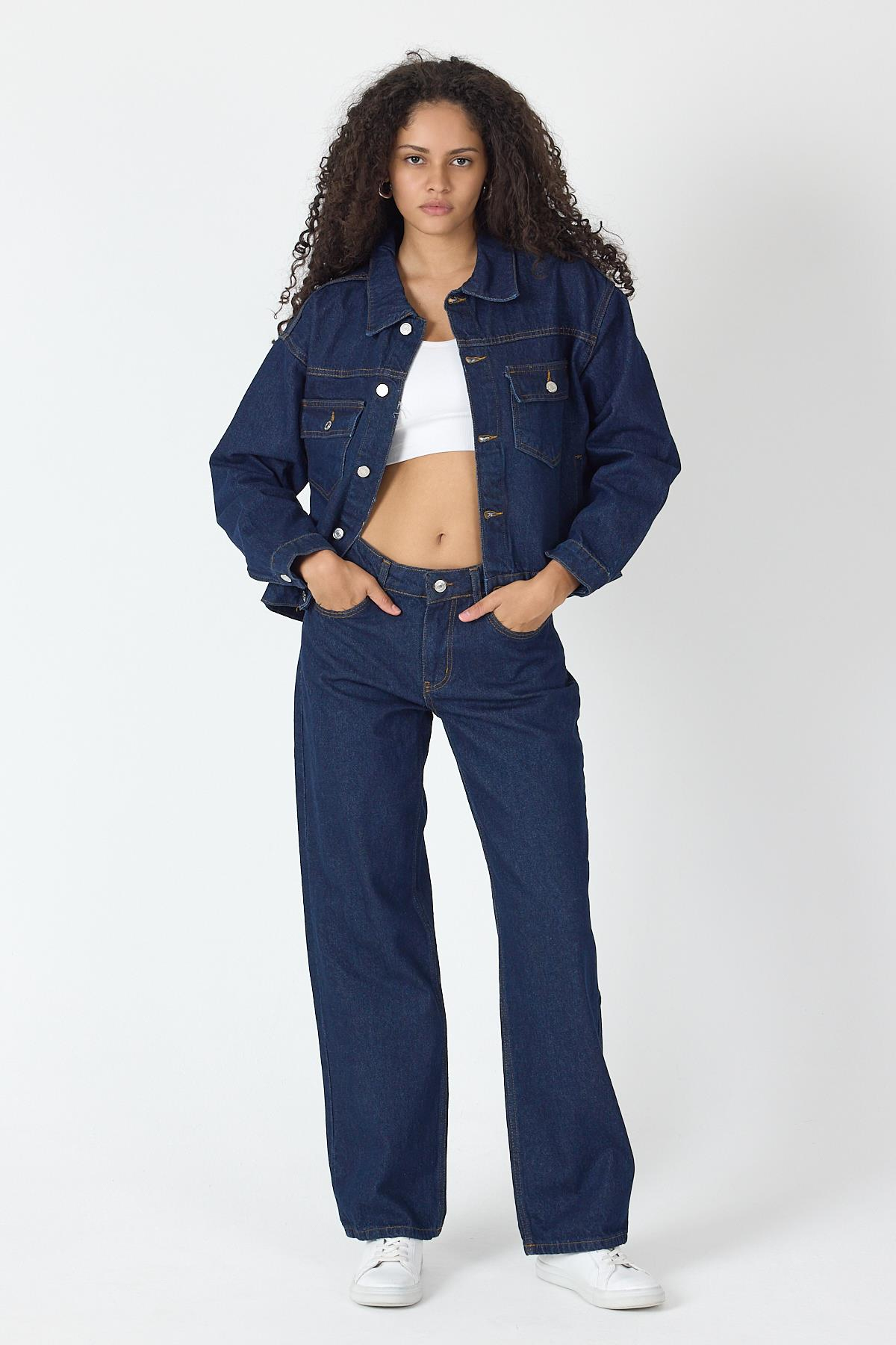 Kadın Lacivert Denim Kot Takım Pantolon Ve Ceket (605PLST)